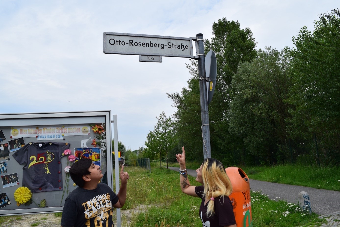 Am Vormittag des 2. August fuhren die Jugendlichen an einen zentralen Ort der Verfolgung der Berliner Sinti*zze und Rom*nja. Am ehemaligen Zwangslager Marzahn wurde im Jahr 2011 ein Ort der Erinnerung und Information eingeweiht. Die Jugendlichen erarbeiteten Präsentationen zu den dort ausgestellten Biografien, zu denen die Geschichte des Auschwitz-Überlebenden und Bürgerrechtlers Otto Rosenberg gehört. Am Abend des zweiten Augustes besuchten die Teilnehmenden die Gedenkveranstaltung „… Ohne Worte … Keine Tränen.“ am Denkmal für die im Nationalsozialismus ermordeten Sinti und Roma Europas.