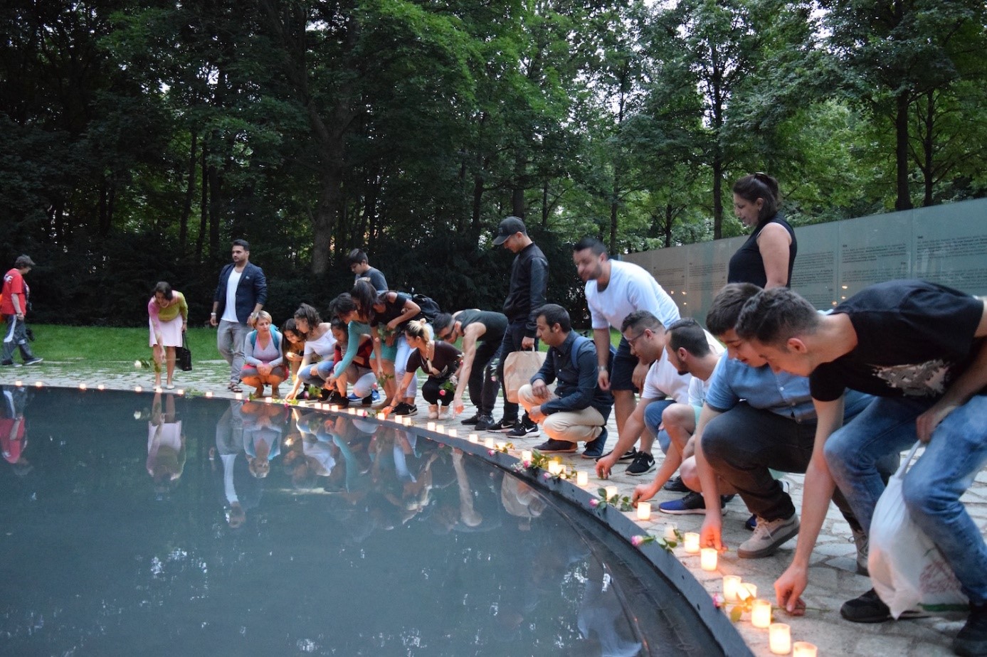 Die Gedenkveranstaltung „Mare Manuschenge – Unseren Menschen“ am Mahnmal für die ermordeten Sinti und Roma Europas hat die jungen Teilnehmer*innen sehr bewegt. Die Rede des Auschwitz-Überlebenden Leon ‚Henry’ Schwarzbaum, der den 2. August 1944 in Auschwitz-Birkenau miterlebt hat und von den Schreien der Kinder berichtete, die bis zum Morgengrauen andauerten, haben ihn ins Herz getroffen, antwortete ein Teilnehmer auf die Frage was er mitnehme von den Tagen in Berlin.